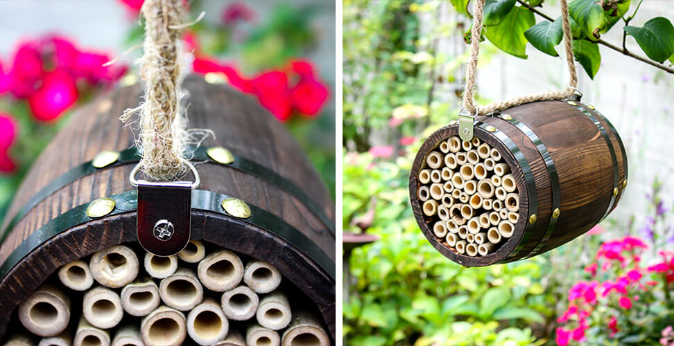 Solitary bees are attracted to holes in wood, so this hive is the ideal design for them, and with a flip-top roof and Perspex covered tray, it makes it easy for you to take a sneak peek into their world and see how any nesting and larvae are getting on.