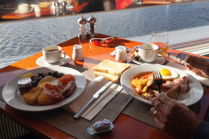 Staff were very friendly, helpful and the yacht was immaculately presented. The exec room was bright, spacious and again spotless! Dinner was nice, service really good swapping one thing for another on the menu was not a problem. Breakfast was also very good, there was so much choice and all hot food cooked perfectly. More than you would expect from a buffet breakfast. One thing is the drinks section is a bit far away from the tables, if you had a family of 5 carrying hot drinks one at a time is a mission - maybe provide some trays by the drinks.