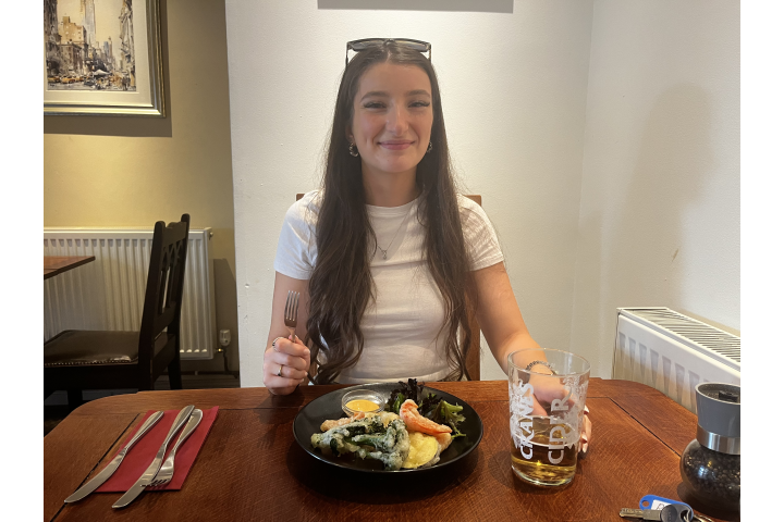 I took my boyfriend to visit the Chequers of Orwell near Cambridge to use our voucher. We arrived early to the venue and were greeted by friendly staff. Even though the staff kindly offered to seat us at our table early, we decided to buy a drink and sit in the outside area for a little bit first where we enjoyed the peaceful surroundings.