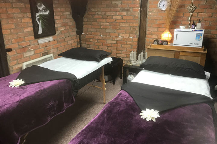 There was a calming scent of spa candles, and our therapists provided a warm welcome on arrival. The location is set in a beautiful and quirky brick and oak beamed building, the treatments rooms are decorated to complement the brick feature walls, and the massage beds were neatly set up with coloured towels and a flower. Candles and fairy lights lit the room and gentle music was playing in the background to set the scene for our relaxing back massage.