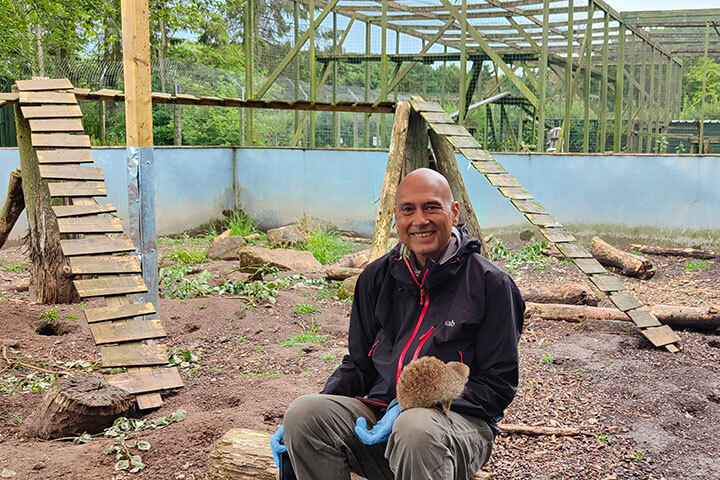 We eagerly arrived at the zoo reception explaining we were there to meet the meerkats. The friendly staff gave us our wristbands and said we had to meet at the action barn 10 minutes before the allocated time. We were greeted by our meerkat expert Jody, who gave us a safety briefing and explained that the first half of the experience would be with the indoor Meerkats and the second half of the experience was in the outside enclosure. Even though the weather was changeable, there was a shelter to sit under outside so when it rained, it wasn't a problem, and it didn't spoil the experience at all. In fact, the Meerkats wanted to sit on our laps even more so that they could get our body heat! We were given latex gloves and in we went, sitting on large pieces of tree trunks in and amongst the animals. Jody talked to us about where they are from and shared all sorts of interesting facts about how they live in the wild. At regular intervals Jody gave us fruit and veg to feed the Meerkats, which they seemed to love. They jumped all over us and they seemed to know when it was time for mealworms. These were a firm favourite and even though Stumpy only has 3 legs, he still managed to push some of the others out of the way to get his food. All of the meerkats had names, although so many, I can't recall them all. Steve was a very photogenic meerkat and I'm convinced he posed and smiled for the camera! When we moved to the outside enclosure, it was more of the same but with different Meerkats, there were a few much smaller younger ones in this pack which was really cute as they could only just climb on to our laps. Such cheeky and inquisitive animals at one point we counted 6 sat on my husband's knee, including Itchy and scratchy both were adorable. He must have had warm legs! Basil tried to open my zip pockets which made me giggle a lot. To see them move so fast when the food came out for them was incredibly entertaining. A truly delightful experience. We were welcome to stay at the zoo as long as we wanted after the experience. This seemed fantastic value as the price of admission was included with the experience, so it felt crazy not to. In addition to the Meerkats there were many other animals at the zoo, including a fabulous Lemur enclosure that you could walk through, wolves, foxes and Ostriches and Llamas to name a few. A great opportunity to learn about all the exotic animals that they look after. For the younger generation there was plenty to do and see including a Dinosaur Woodland walk encounter so a great day out for the entire family. The zoo had great facilities and refreshments, so we enjoyed having lunch there. A day I will remember always. Meeting the Meerkats was by far the highlight of the day and a wonderful memory I will treasure forever.