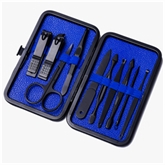 Add a pop of colour to your daily grooming routine with the Mad Man Blue Colour Pop Grooming Kit. This 10-piece kit features premium black anodized surgical stainless steel tools including scissors, fingernail and toenail clippers, cuticle pusher, tweezers, cuticle trimmer, nail file, peeling knife, and ear pick.