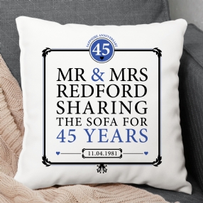 There's no better way to say "Happy Anniversary" to a special couple — or to your spouse — than with a fun, quirky gift. Our Personalised 12th Anniversary Sharing the Sofa Cushion is just that gift. With a big number 12 right in the centre and a place to personalise with the recipients' surname and wedding date, this cushion is perfect for the silk anniversary.