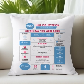 Make someone's 18th birthday a memorable occasion with this quirky Personalised 18th Birthday Cushion. The golden-yellow 18 stands proud in the centre of the cushion, and the surrounding little 18s add a pop of colour.