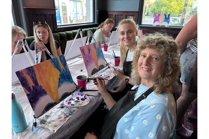 In just two hours, you'll go from a blank canvas to a unique masterpiece ready to adorn your walls. And the best part? We've got all the gear covered! Canvas, easel, paints, pallet, brushes, paint pots, and even an apron to protect your stylish outfit – it's all included. The only thing not on the house is the food and drinks, but don't fret! The venue's always have a great selection of food and drink on offer, should you wish to get involved.