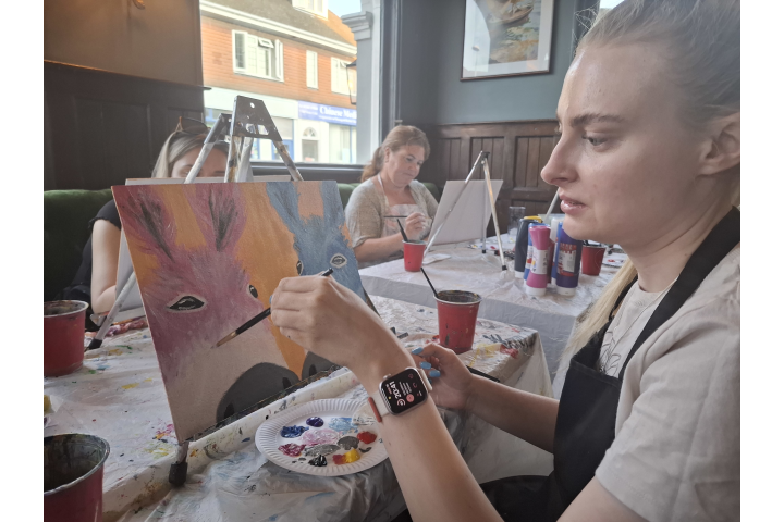 My daughter and I decided to visit the Ship Inn in East Grinstead to paint a donkey portrait for our Sip & Paint experience evening.