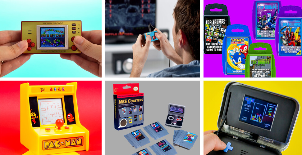 Even your coffee table can join the fun with Nintendo Cartridge Coasters, ideal for protecting your surfaces while repping your favourite 8-bit pastimes. Got a mate who loves a good power-up and a bit of trivia? The Gaming Top Trumps deck will settle the age-old question of who'd win in a showdown: Sonic or Solid Snake. And for the gamer who likes their desk to double as an arcade, the Pac-Man Desktop Arcade brings chompy joy and ghost-dodging drama to your 9-to-5.
