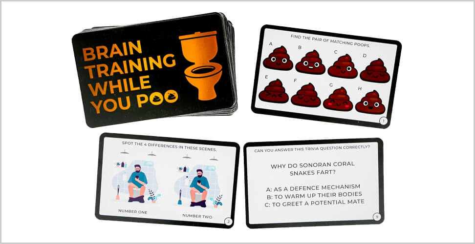 Give their grey matter a proper flex during their... other business. The Brain Training While You Poo cards make a brilliant stocking filler for bathroom philosophers everywhere.