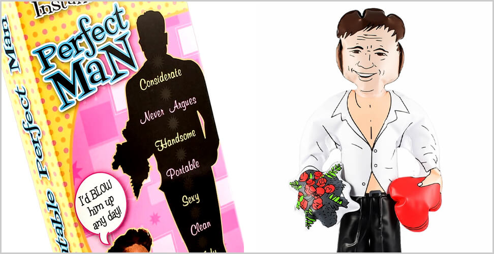 Short, silent, and emotionally available. The Inflatable Perfect Man never watches the football or forgets your birthday. He's got abs, flowers, and no password on his phone. A win for single mates or frustrated girlfriends alike.