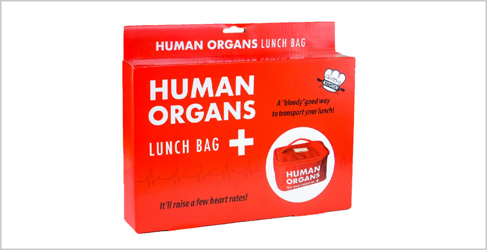Nothing says "don't steal my sandwich" like a lunch bag that looks like a kidney cooler. The Human Organs Lunch Bag adds humour, horror, and probably some HR questions.