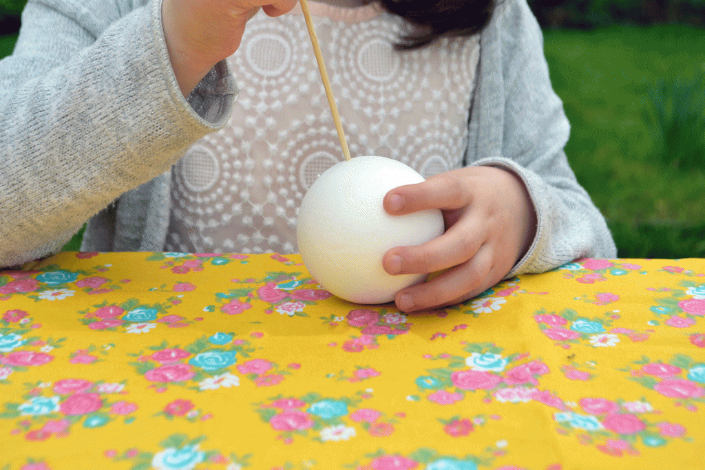 When your flower is complete, press it carefully into the polystyrene ball. Admire your work, and go back to do some more!