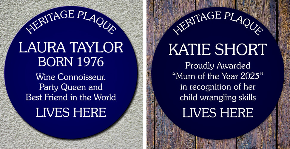Some people write heartfelt gift messages. Others give you a personalised spoof heritage plaque declaring that your best mate once lived here, talked nonsense, and survived six roast dinners in a row. One is sentimental. The other is unforgettable.